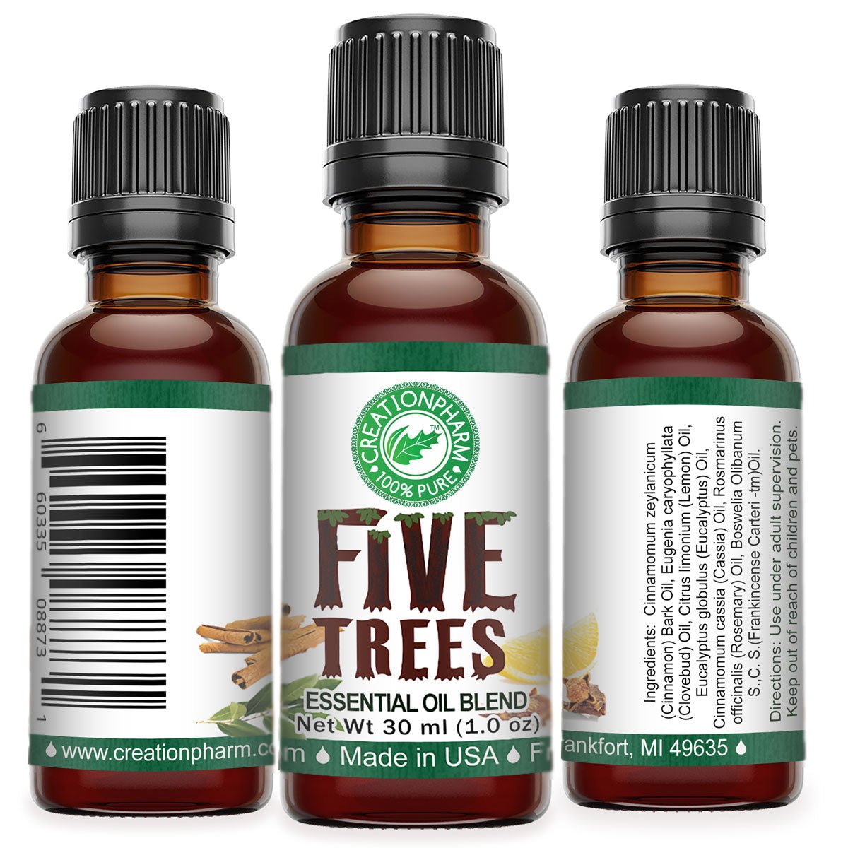 Five Trees Essential Oil Blend 30 ml With Cinnamon Clove Lemon Eucalyptus Cassia Rosemary Frankincense Carteri